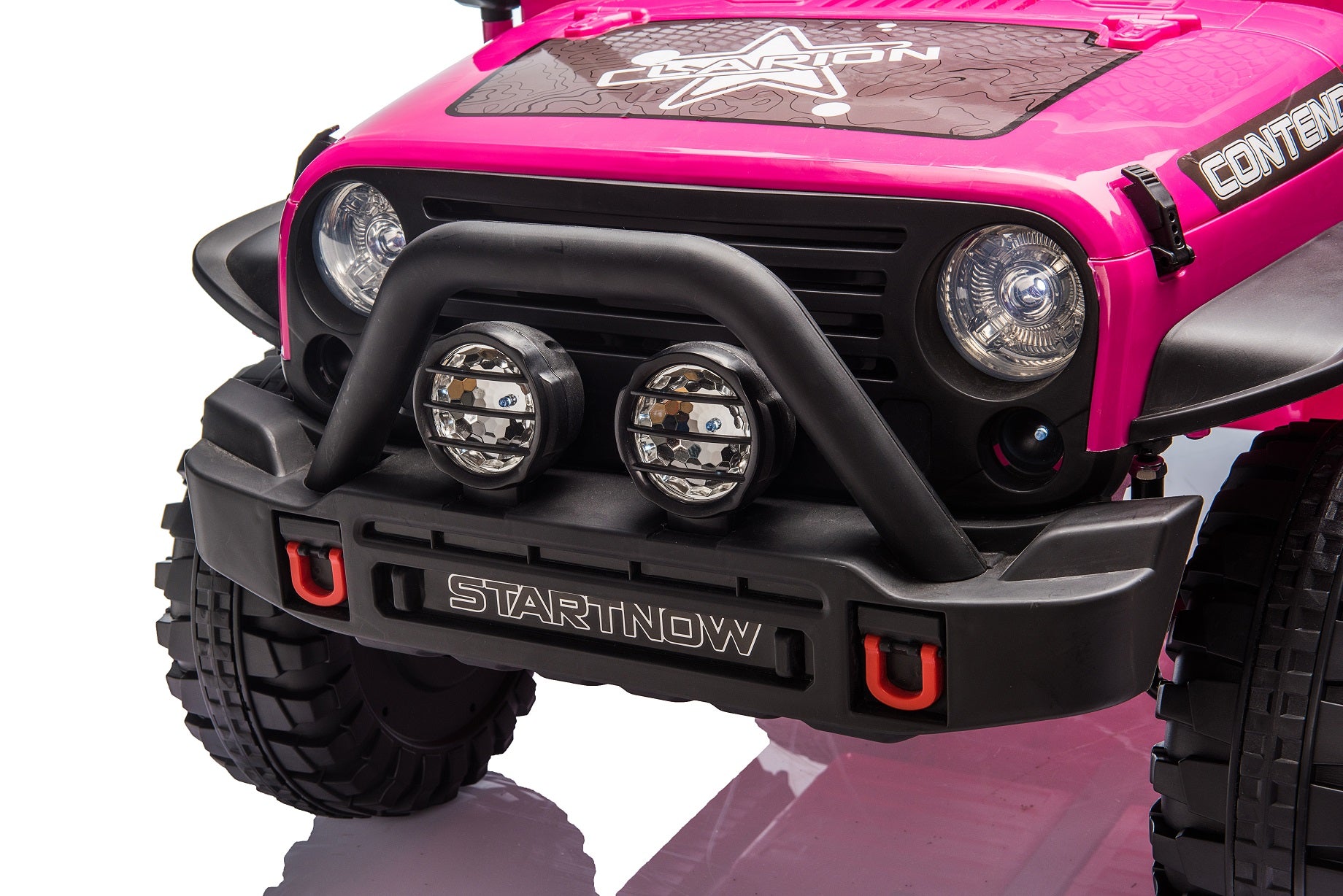 Radio FM, Bluetooth, Music, front and rear light, parent remote control, double doors can open, USB/SD card/MP3 function, power display, volume adjustment, rear trunk, safety belt, four wheels spring suspension, double seats,